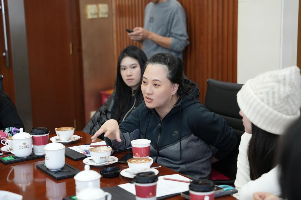 讲座间隙,师生团队品鉴融入总台文创元素的特色咖啡——“CCTV味道.咖啡”,在轻松愉悦的氛围中深化了对“文创+生活场景”融合理念的理解,进一步理解 “文化 IP 生活化” 的实践路径。