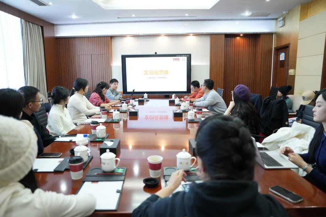 研学活动的核心环节为梅地亚中心第一会议室举办的专题讲座,中传师生与中视实业集团文创部内容营销组两位资深专家围绕文创开发的关键议题展开深度学习和交流。胡宇辰以 “文创化思维的底层逻辑” 为主题,提出 “文化内核 - 商业逻辑 - 用户体验” 三位一体的产品开发模型:强调文化 IP 转化需先深挖符号背后的历史语境与精神内涵,再通过市场化调研匹配目标群体需求,最终以 “可感知、可参与、可传播” 的产品形态实现文化价值与商业价值的协同。