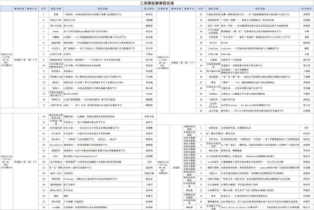 随着比赛推进,部分表现突出的团队逐渐显现。在常规赛环节中,cucQAQ,多模态智能影像生成平台,AI创艺小队,声游城市小队,友学伴UniGrow,千年古昭州AI伴游队六个团队脱颖而出,晋级后续排位赛阶段,通过进一步比拼确定最终优胜项目。入围团队围绕项目核心优势展开更为集中的展示与回应,在更高强度的对比与追问中展现项目竞争力,也将现场气氛推向高潮。