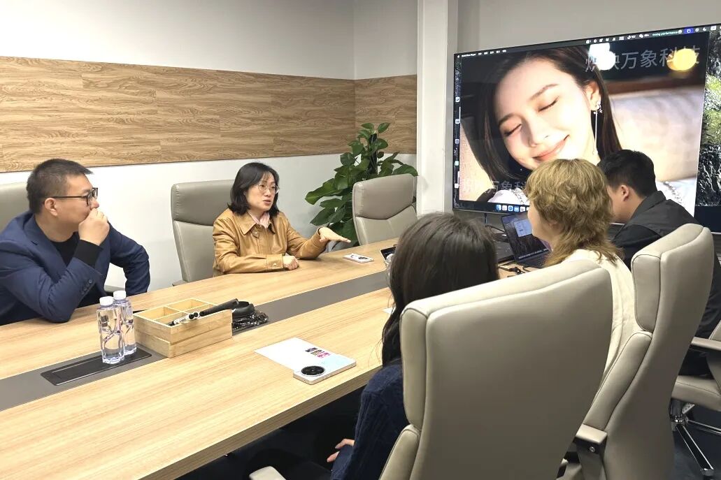 学院教师实地参观企业研发与创作空间,近距离了解AI内容生产全流程,直观感受人工智能技术对传媒内容生产效率、创作形态与商业模式的深刻变革。在座谈环节,双方围绕传媒经济与AIGC产业融合、数字内容商业模式创新、校企协同育人、实习实践基地共建、行业人才需求等议题展开深度交流 。