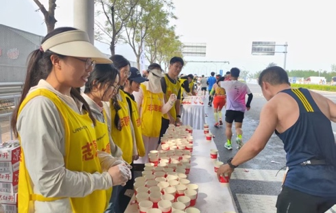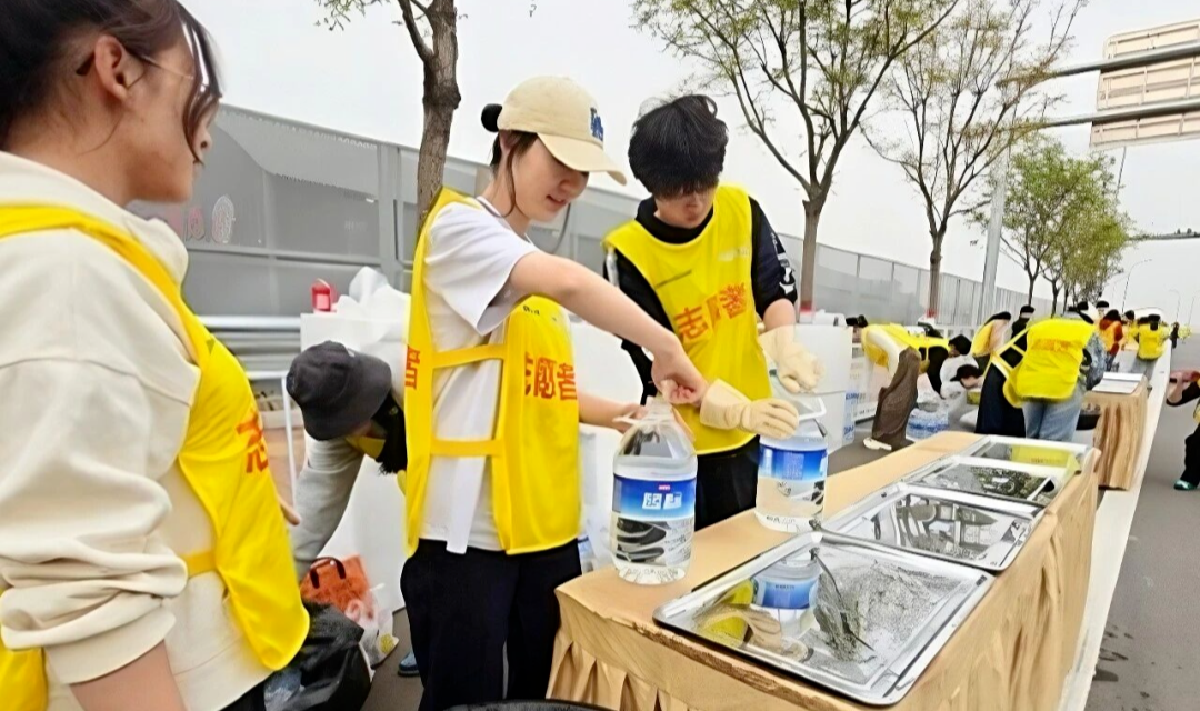 赛事正式打响后,志愿者们分工明确、默契配合。从清晨正午,中传经管学生志愿者始终坚守在各自的点位上,用清晰的指引维持赛场秩序,用及时的物资补给为选手补充体能。一句句热情的“加油”、一声声关切的“注意安全”,汇聚成赛场上最动人的温度。汗水与呼喊交织在赛道旁,让每一位追梦跑者都真切感受到了来自中传学子的善意与温暖。