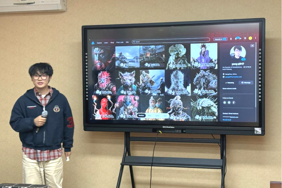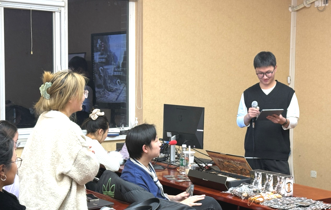 本期工作坊特别邀请游族网络角色原画设计师、独立游戏开发者孙昭凯老师担任特邀嘉宾,由2025级国际商务专业研究生沈书毅、董家麟、李阳、吕亦腾领读主讲,国际商务专业负责人虞海侠主持。现场通过“六根器”收集机制与前沿案例深度拆解,吸引了全校各专业几十名学生参与,共同解码中国首例3A单机大作的全球化密码。